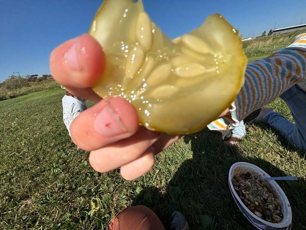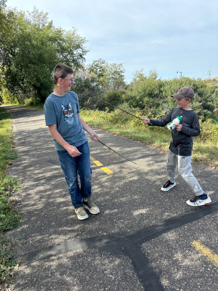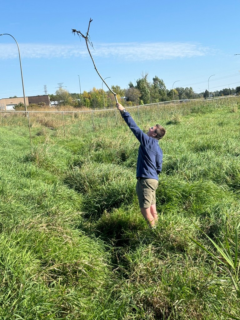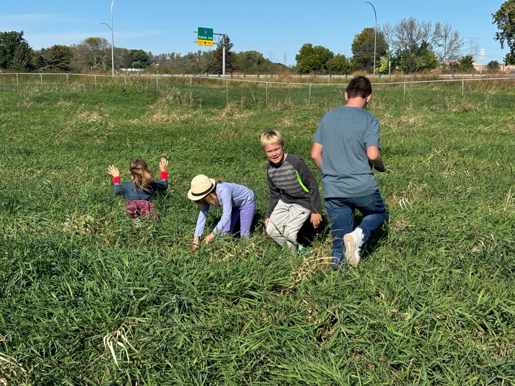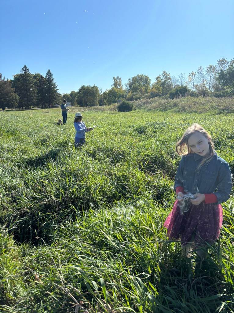 After learning about seed dispersal, we went on a walk to see real-life examples of seed dispersal. We saw mainly gravity, wind, and animal examples. We learned that milkweed might be an example of wind and explosive! Some stewards participated in mullein sword fighting with the mullein stalks!