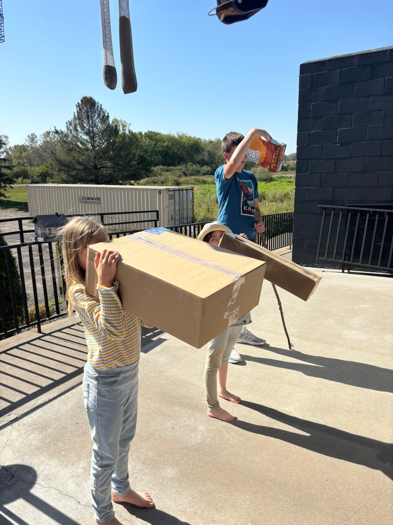 We were excited to learn that today marked the partial solar eclipse! We made eclipse viewing boxes to view the partial solar eclipse, but unfortunately learned afterwards that Minnesota was not in the path or line of viewing for this eclipse! It was still fun to make viewing windows from cardboard boxes, aluminum foil, and paper! We watched a live YouTube version of the solar eclipse from Chile instead. 🙂
