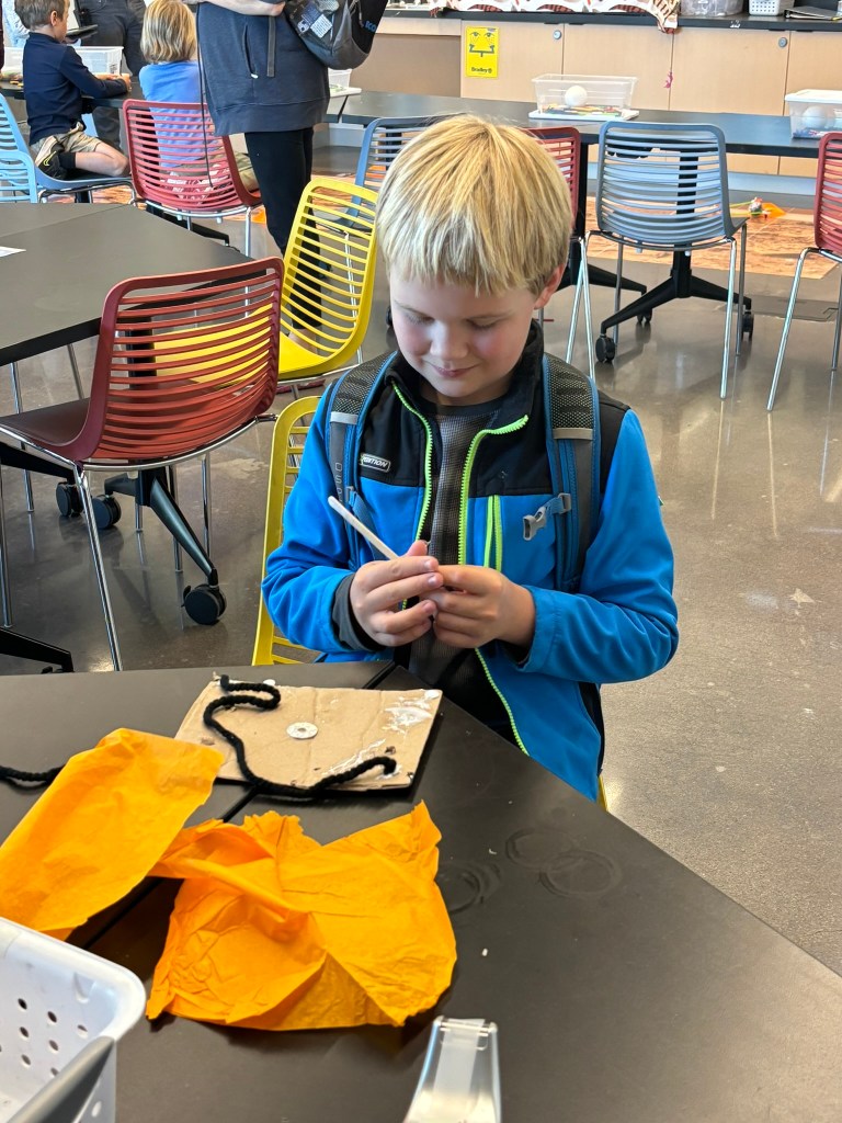 In the photo below, a very generous field trip chaperone and homeschool educator of over 30 years, Karen Voy, was helping our stewards build gliders in the Bell Museum lab! 🙂