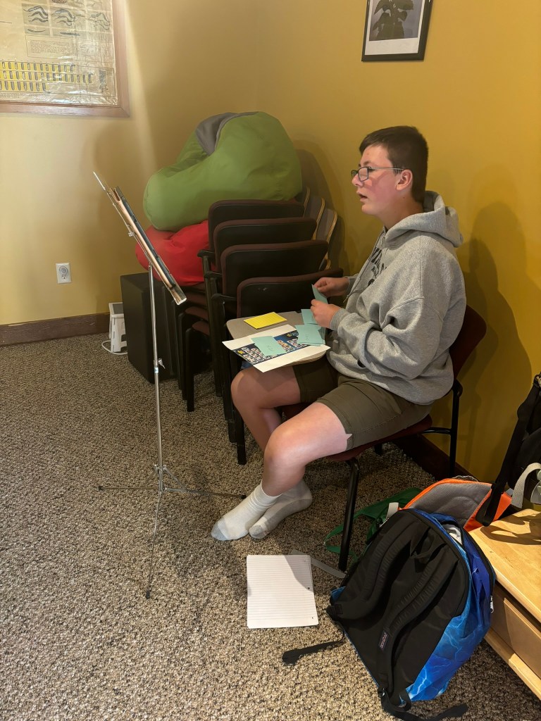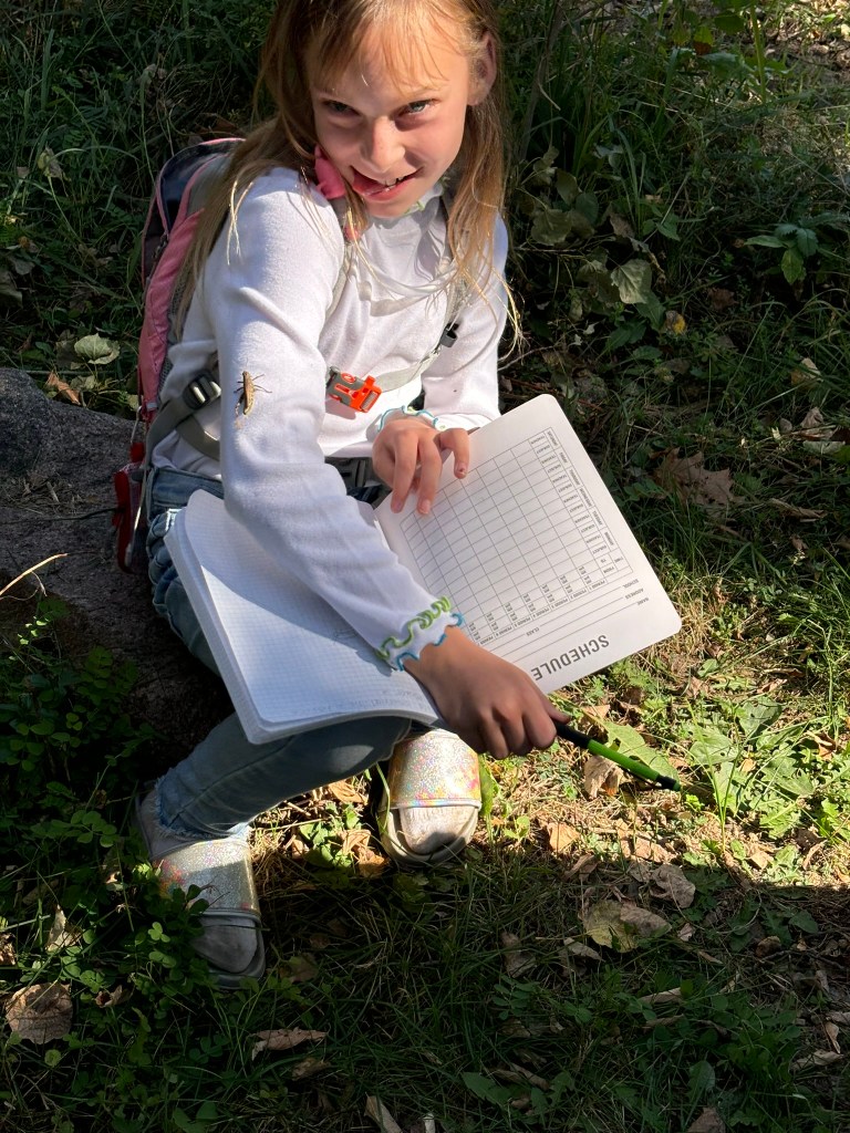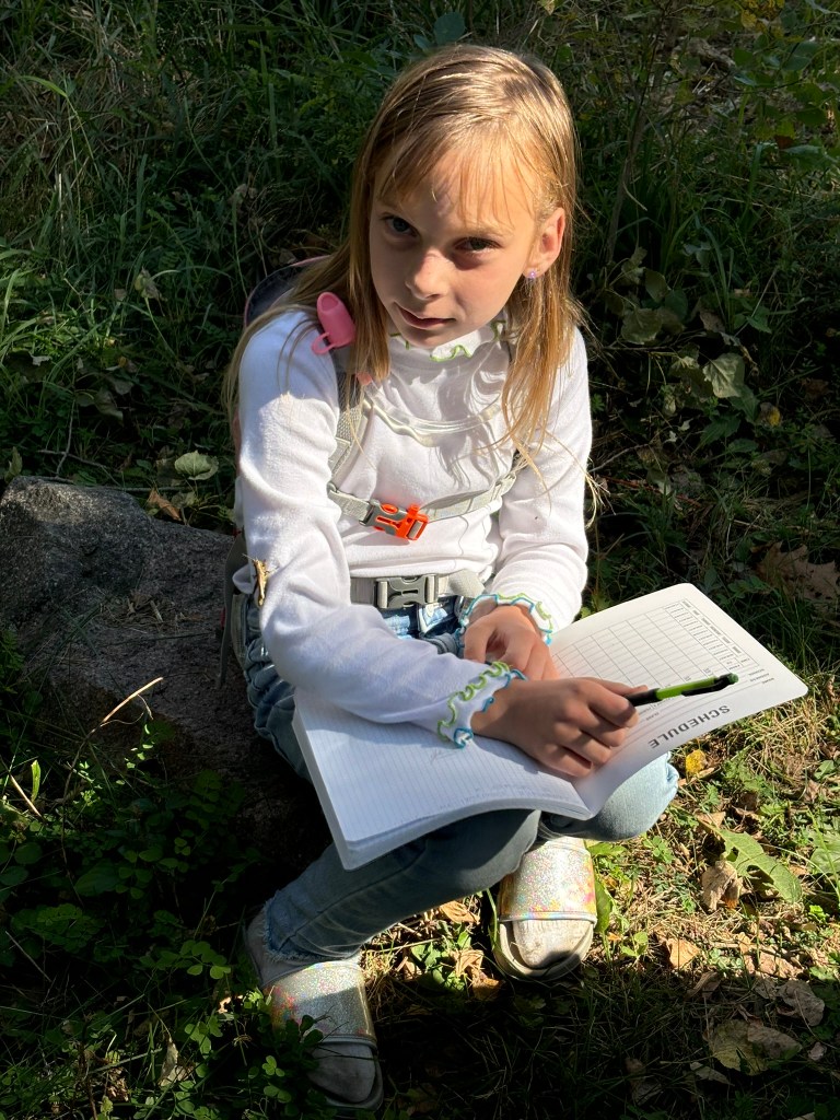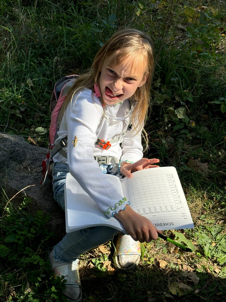 We also did some nature journaling today 🙂 Some of us have study subjects that like to hop on us, like this grasshopper on a steward’s arm, named Hoppy! 🙂