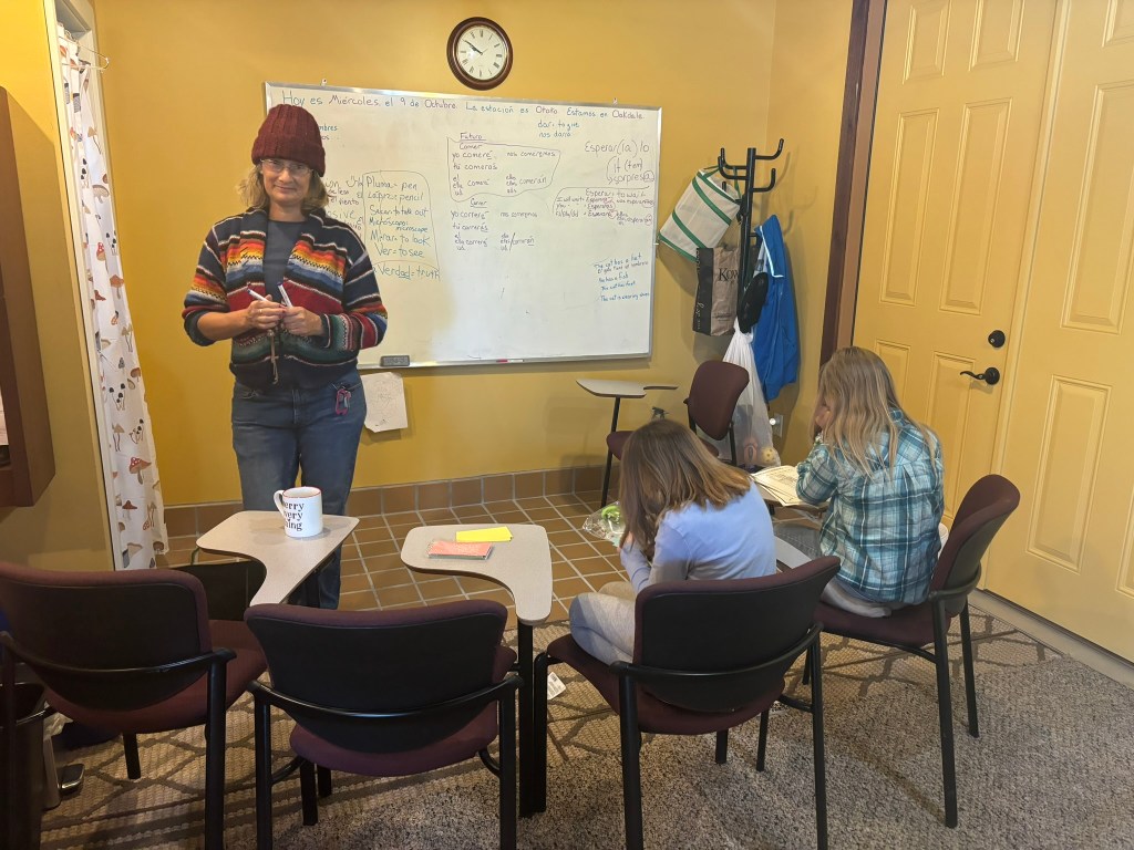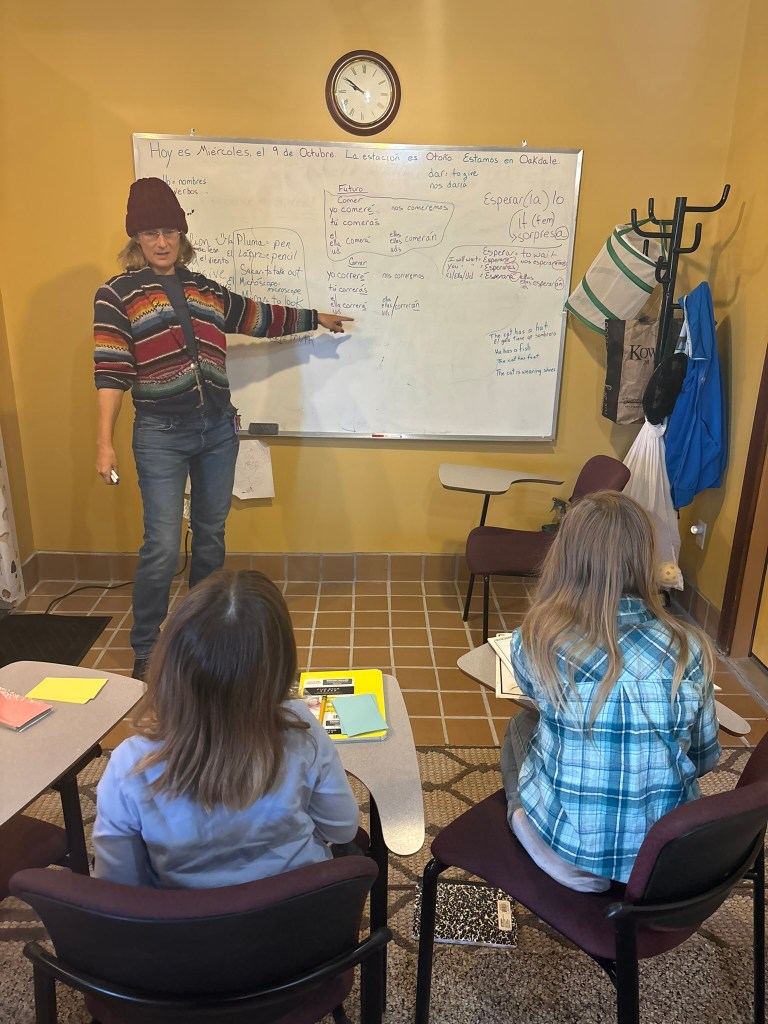 We learned about the future tense of “comer” (to eat) and “correr” (to run) in Spanish with Ms. Chris! 🙂