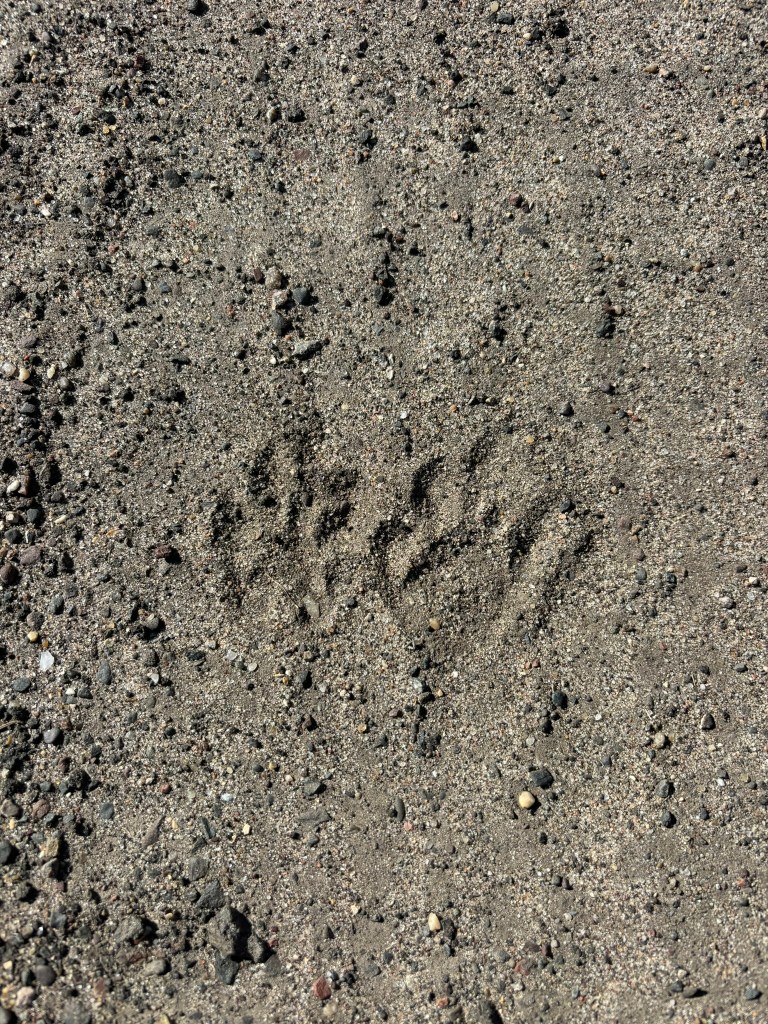 Raccoon (and human lower left hand corner hehe) – notice hind and front paws. There is some crow sprinkled in there too!