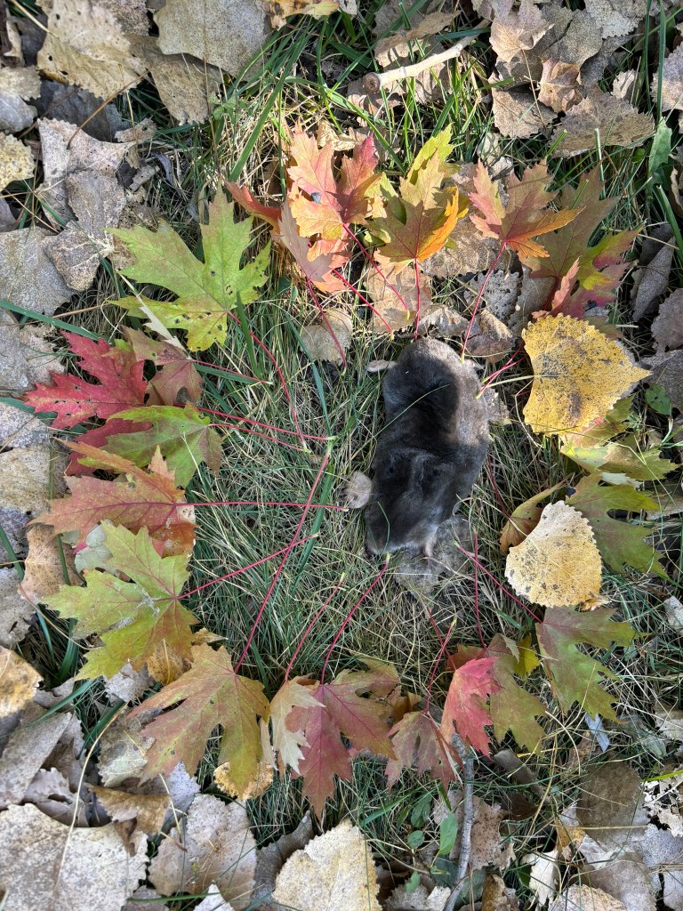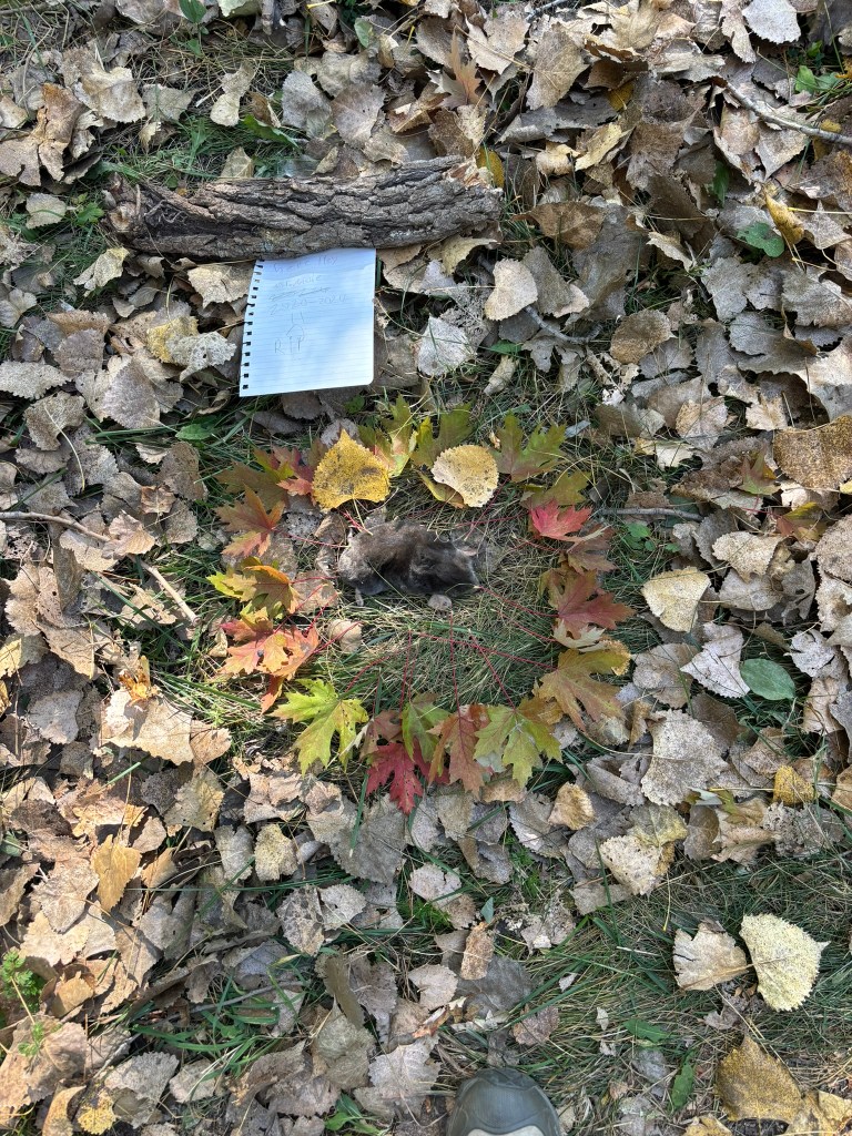 The following week (10/15 and 10/16), we checked on the place where we held our funeral for Mr. Mole (Tope). When we arrived to our colorful leaf resting place for Tope, we saw that his body was gone! He vanished! We looked all around the area for his body, but it was nowhere to be found. Perhaps another animal thought it would be good for Tope to not go to waste. 🙂