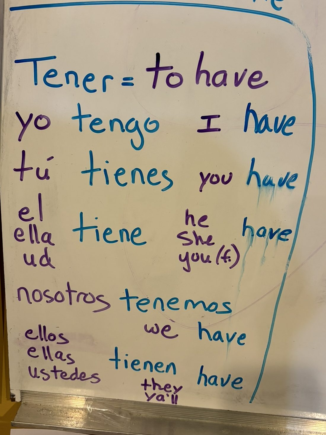We also learned how to conjugate the verb “tener” (to have). 🙂